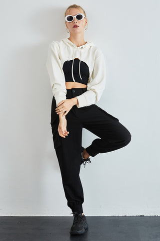 Look hot and keep your arms warm with the Polex trimmed hoodie. This interesting piece includes a super-cropped cutout hem that shows off your top. A sewn-together hood features drawstring terminations - ideal for being comfortable in any climate.